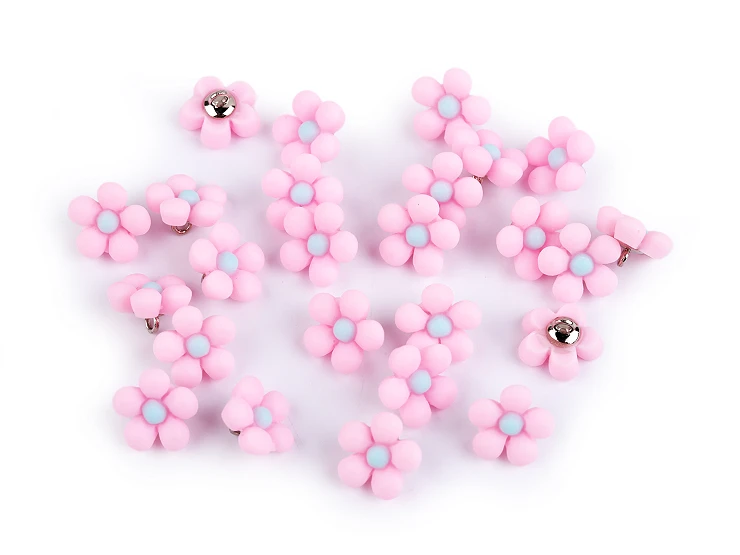 Kukka, vaaleanpunainen, muovinen nappi